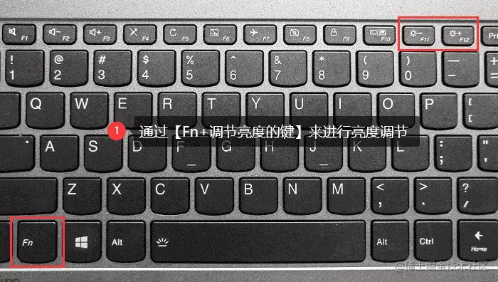 还有一种更快捷方便的方法,就是通过【Fn+调节亮度的键】来进行调节。如下图:
