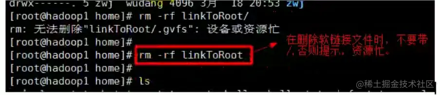 案例1:在/home目录下创建一个软链接linkToRoot,连接到/root目录