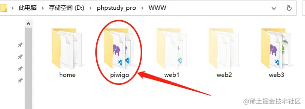 在这里,笔者的phpstudy是安装在D盘下,因此我们将piwigo解压后的文件夹直接粘贴到phpstudy的WWW文件夹里。