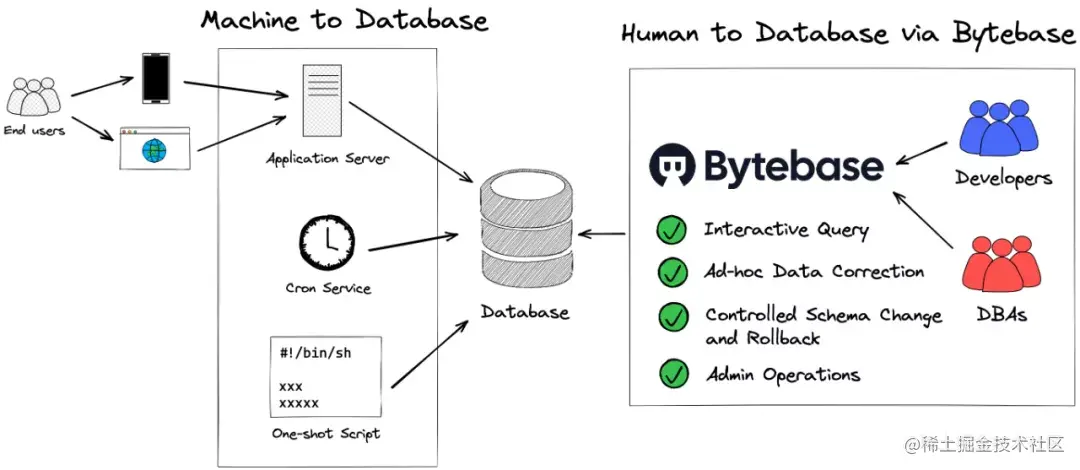 这里我们引入了 Bytebase,它不仅可以包揽人工访问数据库的所有场景,同时也把 schema 变更统一成了一套具备管控能力的流程。