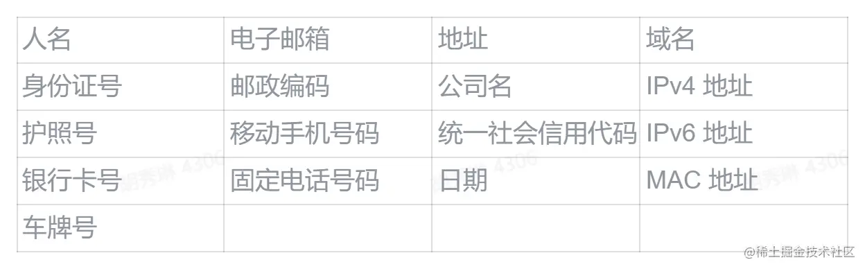 目前内置支持 17 类敏感数据类型,可以通过自定义正则支持更多类型的识别。对于有地区和语言差异的类型,目前都是支持中国大陆地区、简体中文。具体敏感数据类型如下: