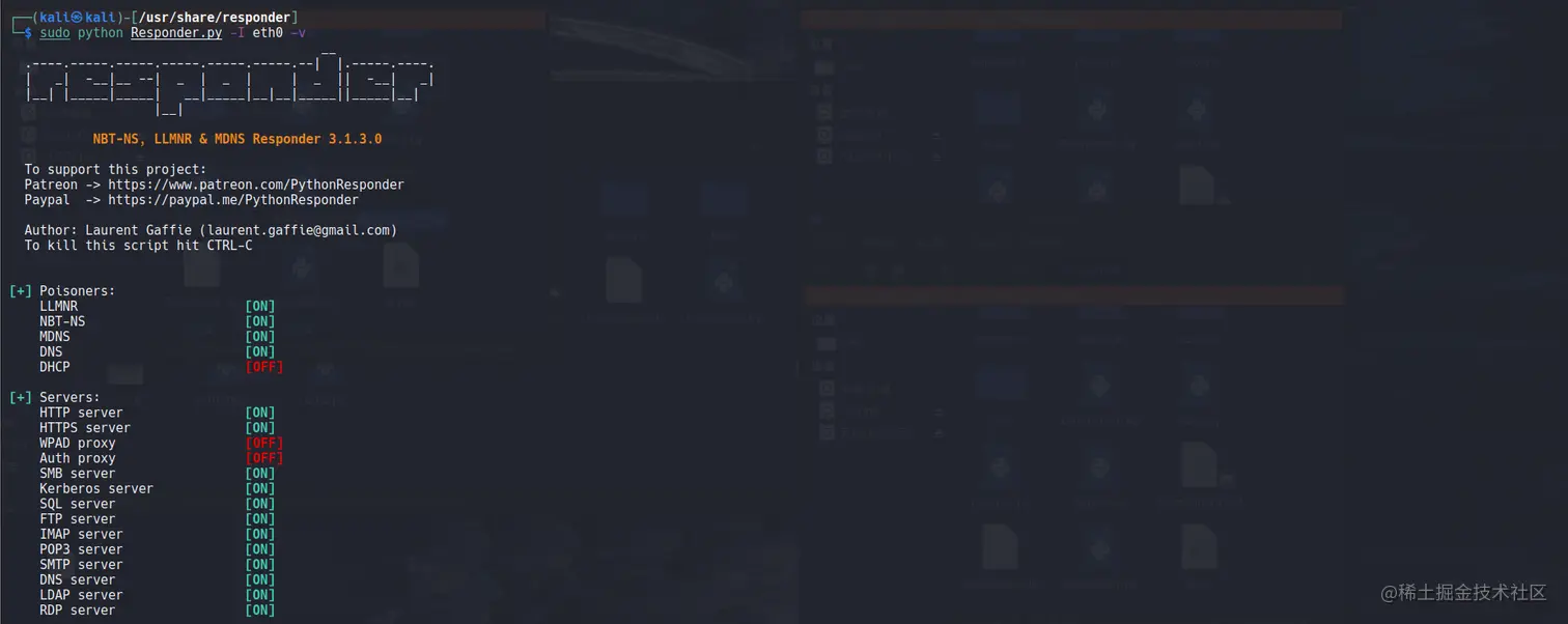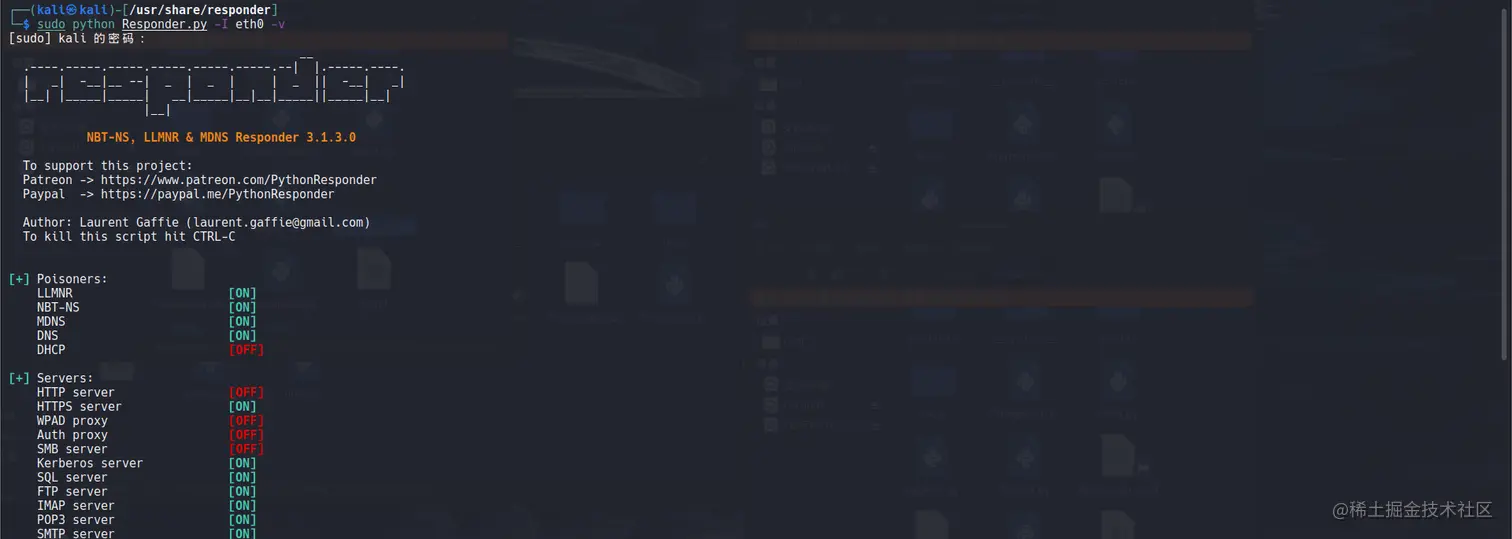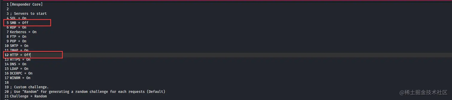 修改一下responder的配置文件 Responder.conf,不让其对 hash 进行抓取。将SMB和HTTP的On改为Off