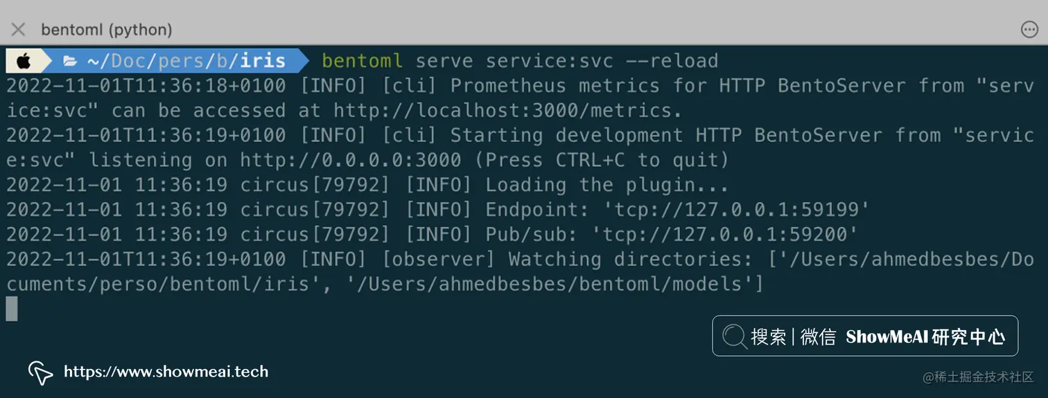 bentoml serve service:svc --reload