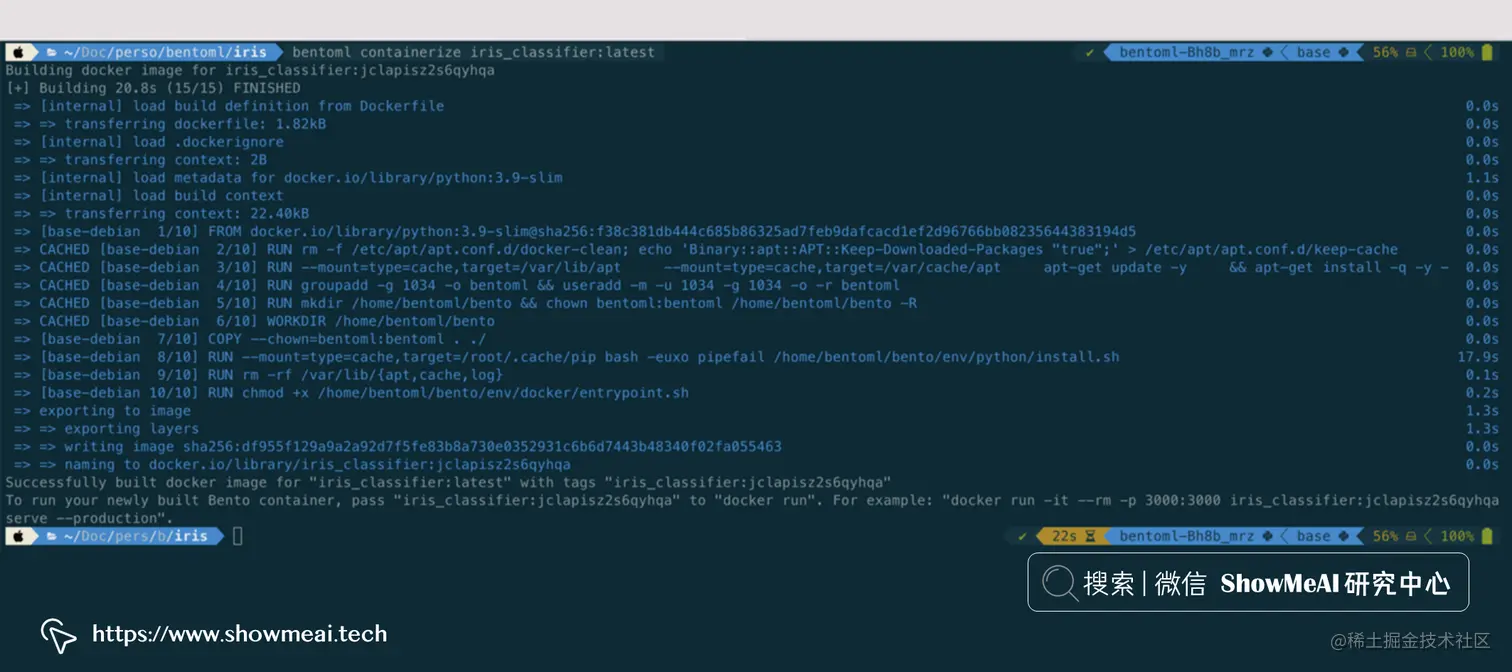 创建便当后,您可以使用dockerize命令来构建镜像,BentoML 提供了这个简单的命令方便使用。具体操作如下: