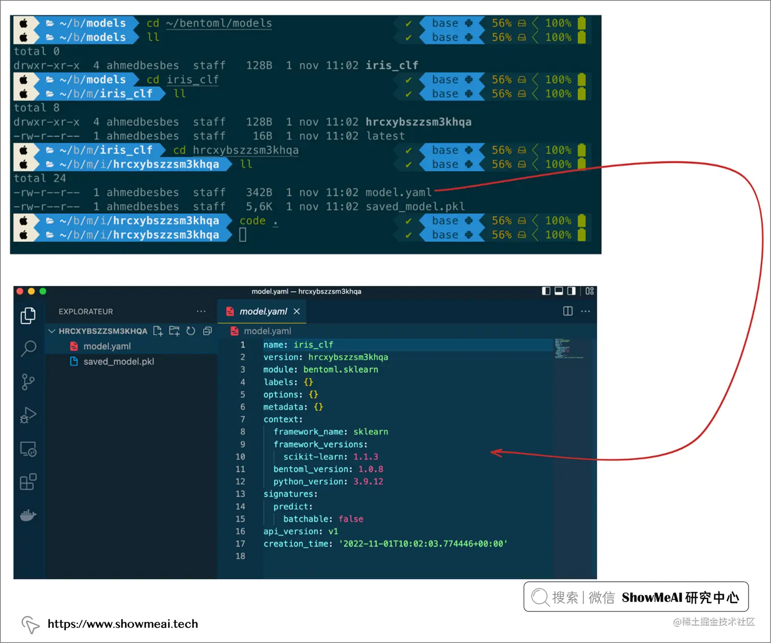 它还会创建一个以模型标签命名的文件夹。打开和查看此文件夹,会找到二进制文件和一个名为 model.yaml描述模型元数据。