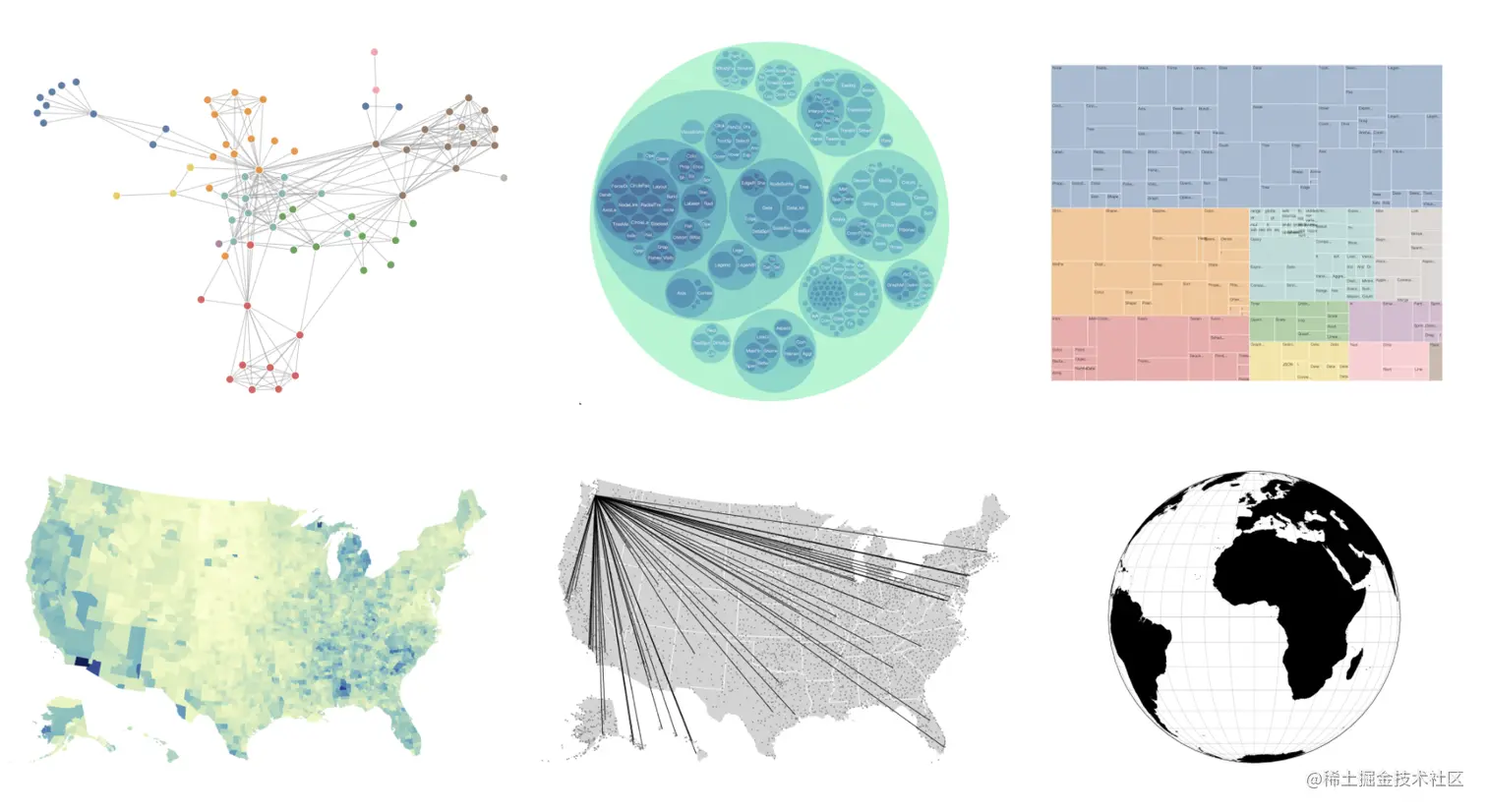 G2 聚焦于统计图表,但却不限于统计图表,因为图形语法本身就是包罗万象的。所以新版本的 G2 也支持基础的关系数据和地理可视化。(更高阶的可视分析应用移步 G6 和 L7)