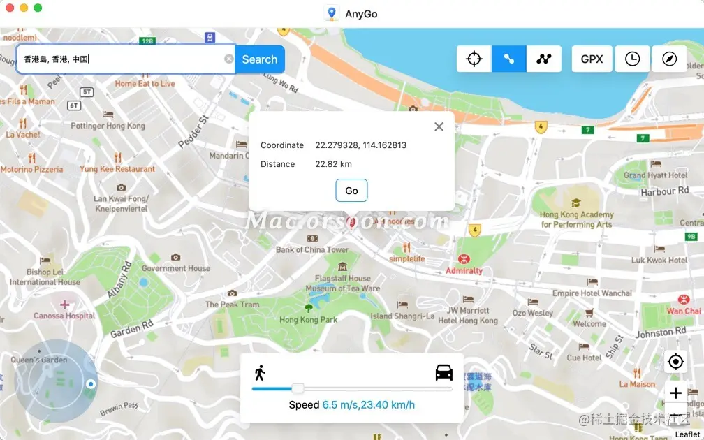 AnyGo可以通过电脑的形式来对你手机当中的定位进行修改,只需要将iPhone / iPad连接到Mac上面就能够为你进行位置上的修改,而且还有模拟走路功能,可以模拟GPS沿着***道路或绘制的任何路径的运动,还适用于在玩某些游戏的时候,你还可以自定义不同的行进速度。