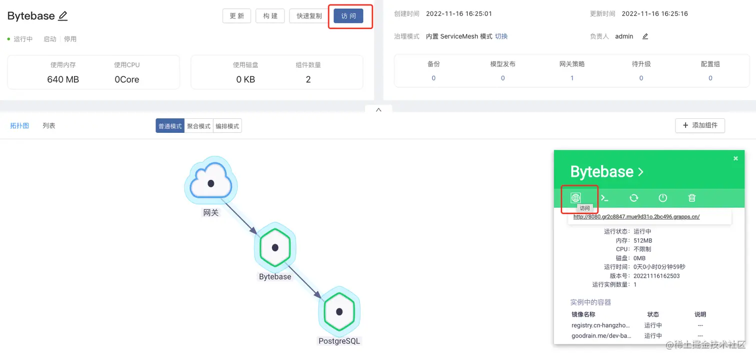 安装后,可以通过 Rainbond 默认提供的域名访问 Bytebase。