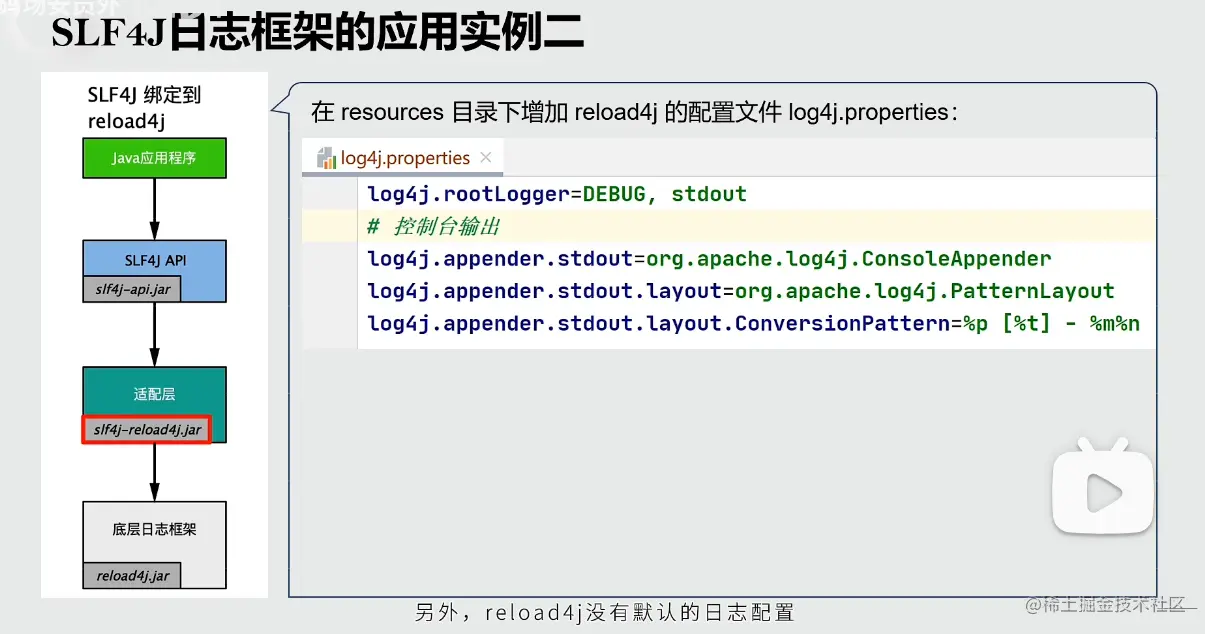 reload4j没有默认的日志配置,所以需要在项目中增加日志配置。