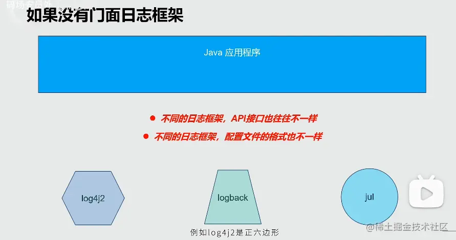 不同日志框架的API接口和配置文件不同,应用程序在使用日志框架时往往需要针对不同的日志框架来修改应用代码,不利于软件的开发、维护,代码耦合性高。