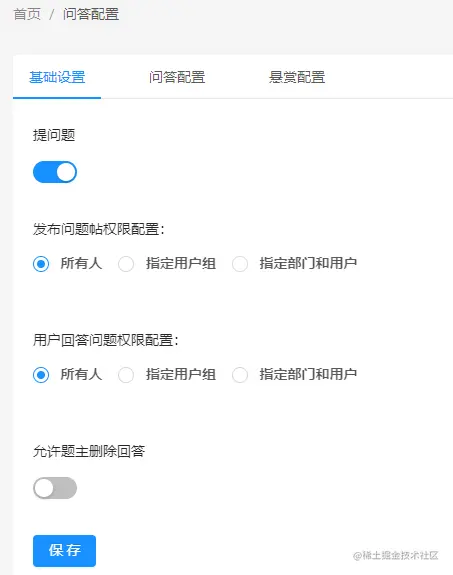 管理后台可配置问题的发布和回答权限,支持配置题主删除回答权限。