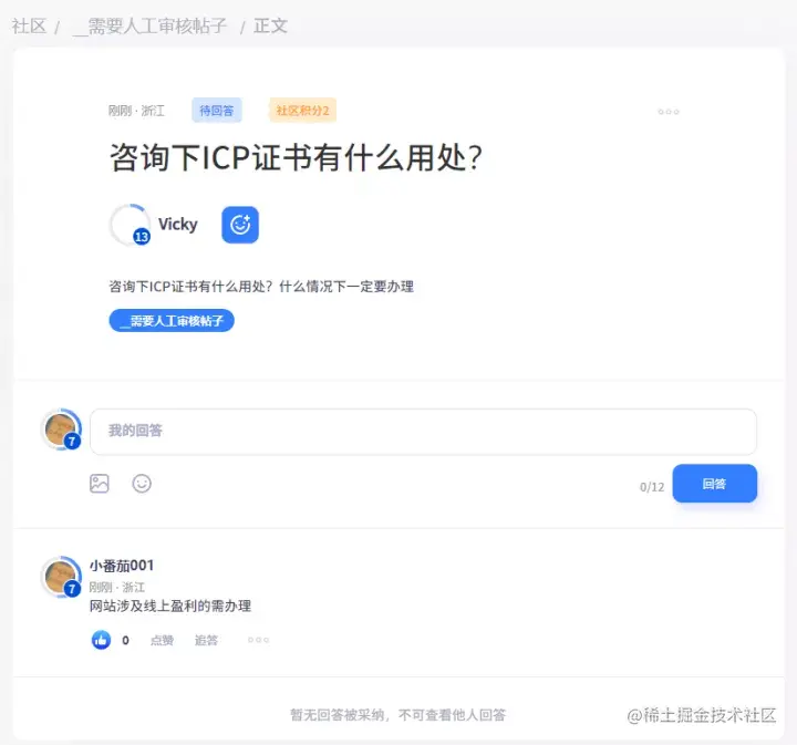 题主可邀请回答,可对问题进行补充说明。没有被采纳的回答前,回答仅题主可见,用户只能看到自己的回答及回答下的追问; 用户可匿名回答问题。