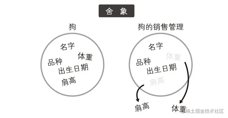 舍象:指的是舍去对象的几个性质,只关注其特定的性质。