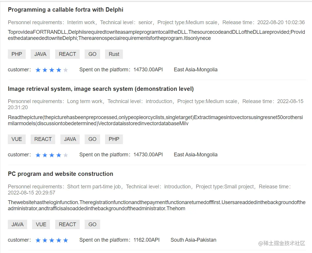此外,由于国外招聘开发者的成本过高,国外企业也会发布相关的招聘需求,用更低的成本去完成公司的项目。