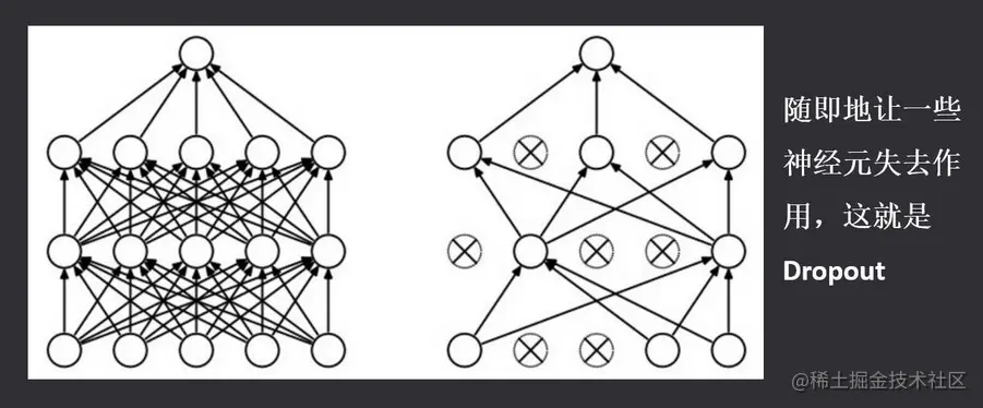 Dropout是Google提出的一种正则化技术,用以在人工神经网络中对抗过拟合。Dropout有效的原因,是它能够避免在训练数据上产生复杂的相互适应。Dropout这个术语代指在神经网络中丢弃部分神经元(包括隐藏神经元和可见神经元)。在训练阶段,dropout使得每次只有部分网络结构得到更新,因而是一种高效的神经网络模型平均化的方法。