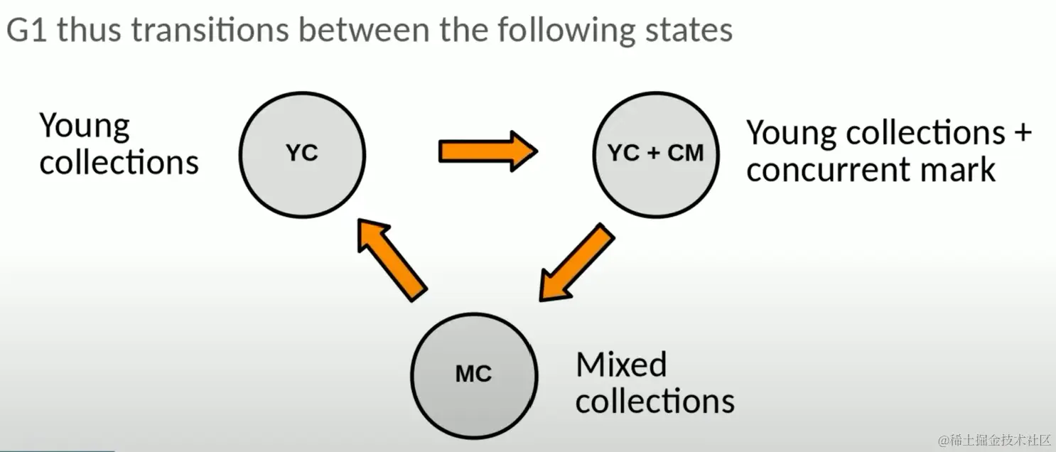 当年老代占用率达到某个阈值时,即Initiating Heap Occupancy threshold,即启动仅年轻阶段和young+concurrent mark阶段之间的过渡。默认情况下,它是 45%,但这可以通过 InitiatingHeapOccupancyPercent JVM 选项更改。