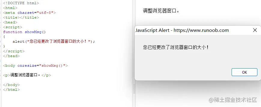 7.onmessage属性:当触发消息时运行脚本 8.onoffline属性:当文档离线时运行脚本 9.ononline属性:当文档上线时运行脚本 10.onpagehide属性:当窗口隐藏时运行脚本 11.onpageshow属性:当窗口可见时运行脚本 12.onpopstate属性:当窗口历史记录改变时运行脚本 13.onredo属性:当文档执行再执行操作(redo)时运行脚本 14.onresize属性:当调整窗口大小运行脚本 表现形式: