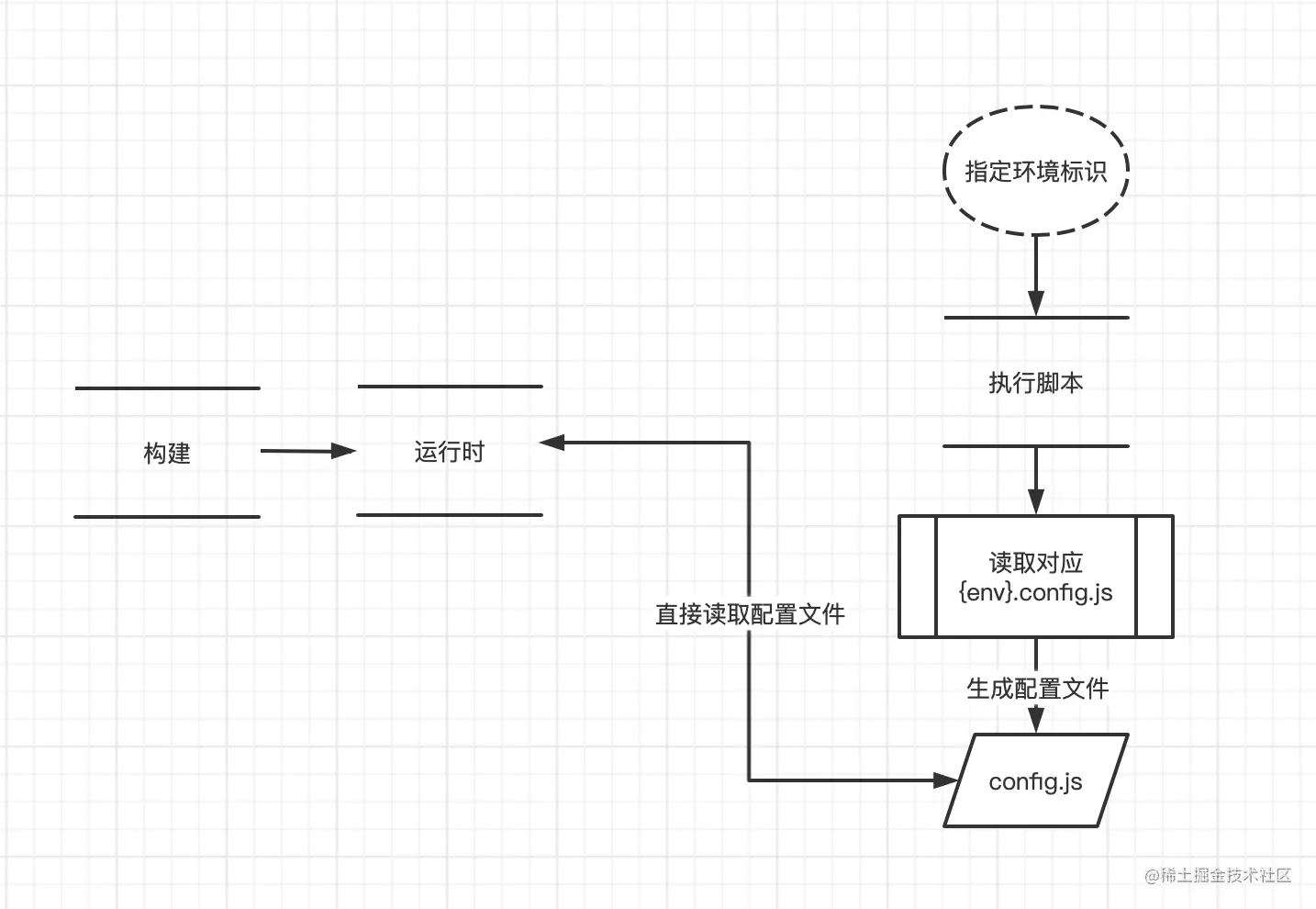- 拆分环境配置代码到不同的配置文件,通过动态生成各个环境配置文件到本地固定代码文件中,在其他业务代码中固定引用此文件