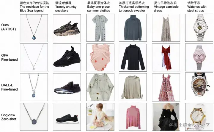 为了更加直接地比较不同场景下,ARTIST和baseline模型生成图像质量对比,我们展示了电商商品场景和自然风光场景下各个模型生成图像的效果,如下图: