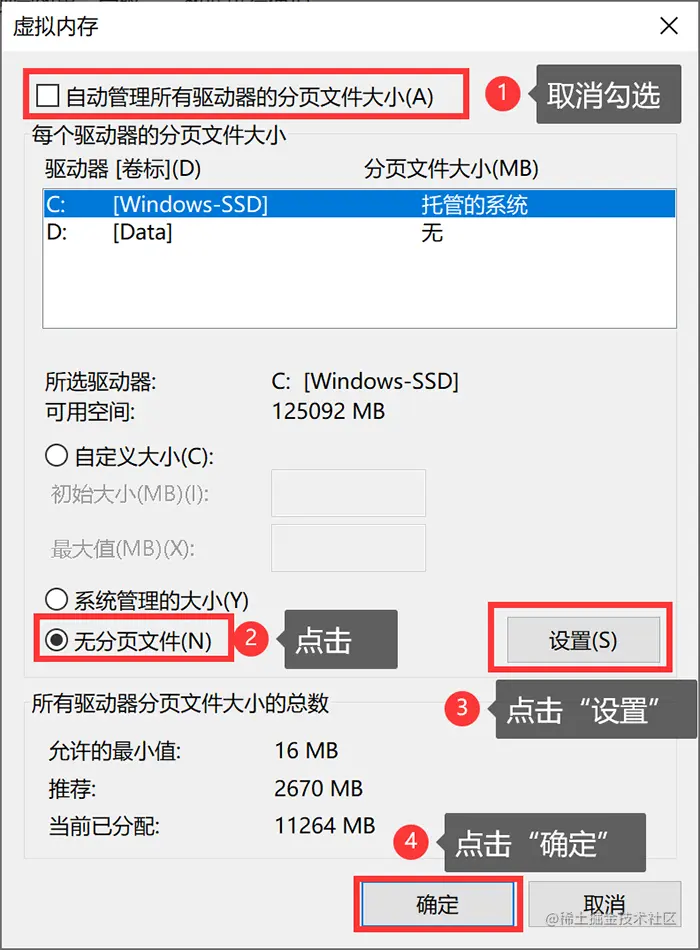 四、关闭c盘虚拟内存