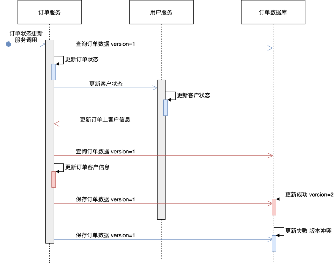 上述图中有两个服务,订单和用户中心,蓝色箭头表示订单中心对外提供的服务 ,实现订单状态更新,其中会调用用户服务更新客户状态,标记此客户已有下单记录。红色箭头表示用户中心调用订单中心,用户服务在标记完客户状态后反过来会调用订单服务,持久化订单上客户信息。上述调用形成了闭环,最终会引起订单数据库中的版本冲突,导致更新失败。那么如何避免这种循环依赖呢?总结以下几个准则: