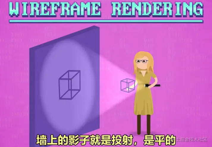 如果用光去找一个3D的物体的时候,用一个平面去展示投影,当转动3D物体的时候,投影会看起来像3D物体,尽管投影面是平面。