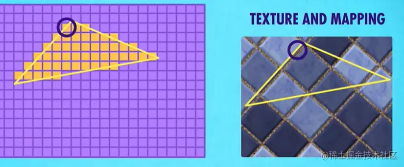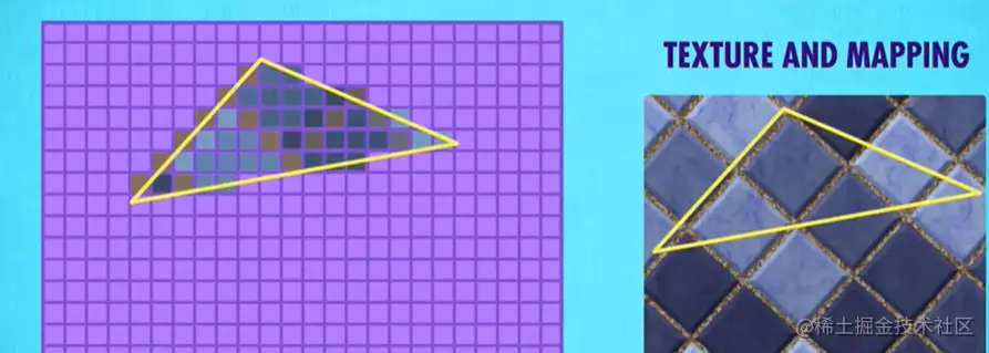 - 当决定填充当前像素选择什么颜色时,纹理算法进行查询纹理,从相应的区域取平均颜色,并填充到多边形