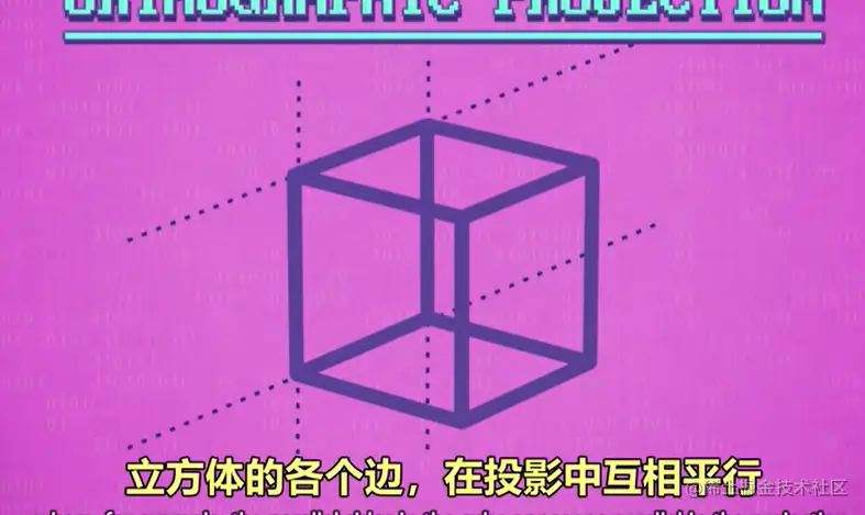 立方体的各个边在投影中互相平行,可以说利用数学将3D转换成了2D的坐标系