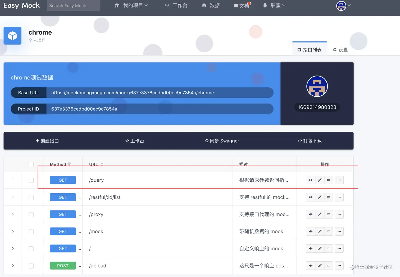 我们看下request这个请求的接口数据 ,我在eazyMock平台新建了一个项目