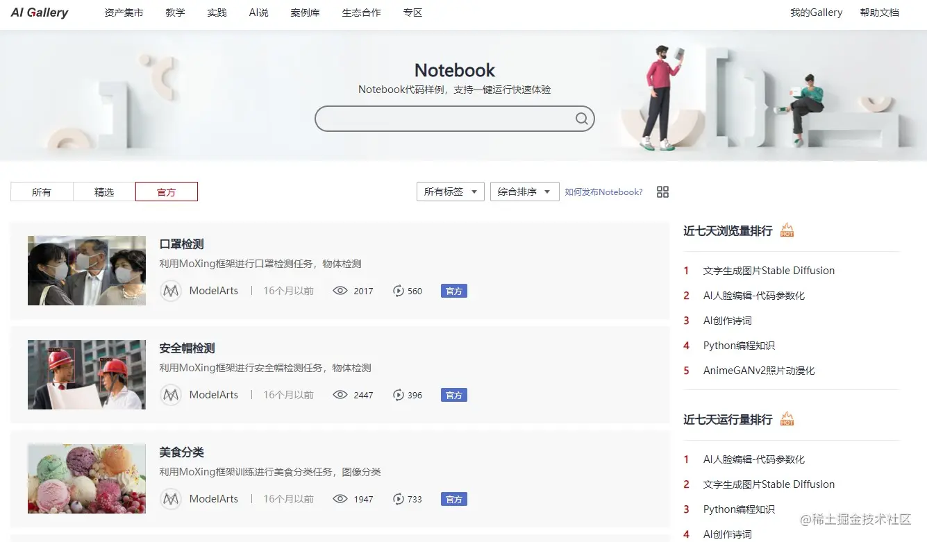 华为云AI Gallery是在ModelArts基础上构建的“知识”+“实战”的AI开发社区,涵盖算法、模型、数据、Notebook案例、课程、论文、实践等10余种、50000余个AI资产。开发者可以基于AI Gallery平台进行模型训练、开发等一系列的操作,轻松从0到1进阶为AI达人。