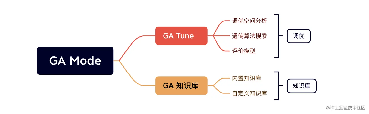 GA Mode 首先会进行调优空间的分析,然后利用遗传算法进行搜索,评估出最优调优策略后存入知识库中。