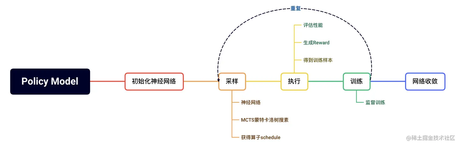 - RL Mode:Reinforcement Larning 即强化学习,原理为 将schedule调度过程抽象为基于蒙特卡洛树搜索的决策链 (