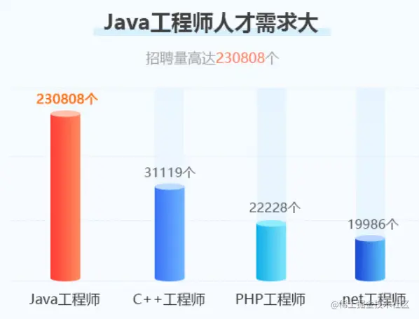 据统计,目前Java工程师的行业需求量较大,在互联网盛行的今天以及为未来,编程都是必不可少的。所以这个行业的未来前景也是极度可观。