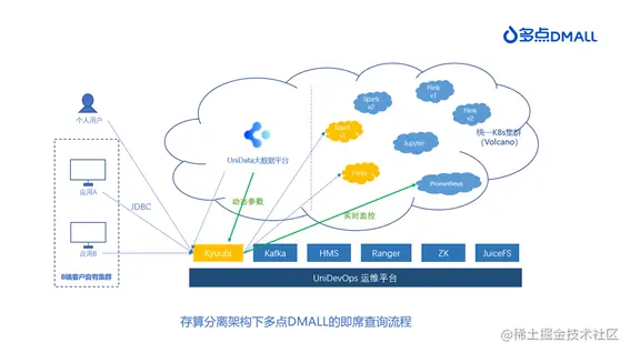 伴随着国家产业升级的推进和云原生技术成熟,多点 DMALL 大数据技术也经历了从存算一体到存算分离的架构调整变迁。本文将从引入 Kyuubi 实现统一 SQL Proxy 的角度讲述这一探索实践的历程。