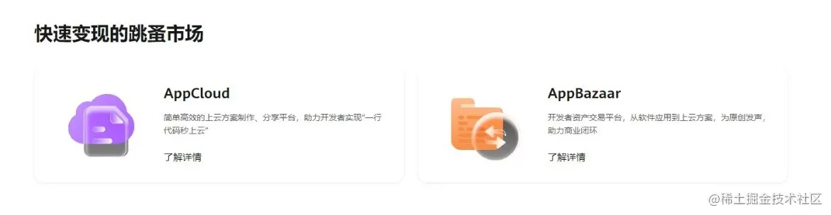 - AppBazaar开发者资产交易平台,为开发者的软件应用、上云方案提供变现便捷通道,帮助开发者完成从应用开发到上架全流程闭环。