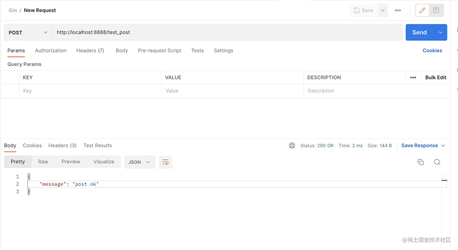 上述代码完成了一个最简单的POST请求,通过POST请求并返回JSON数据(关于请求参数和请求体的内容见下一篇文章)