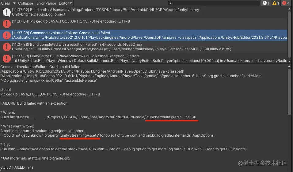 Build file '/Users/czhenya/Projects/TGSDK/Library/Bee/Android/Prj/IL2CPP/Gradle/launcher/build.gradle' line: 30