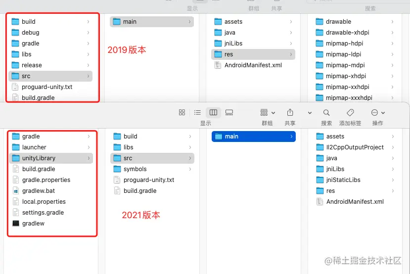 遇到问题的原因:Unity升级导致打安卓包的设置变了。 若你同时打包过2019版本和2021版本,你会发现两个版本的Unity导出的安卓工程目录都是不一样的: