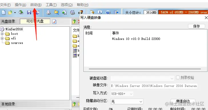 这边刚开始用了微pe,通过自带的dism写入的方式,遇到点问题,所以使用了UltralSO制作镜像,点击准备好的镜像iso文件,点击启动,写入u盘,等待片刻即可。