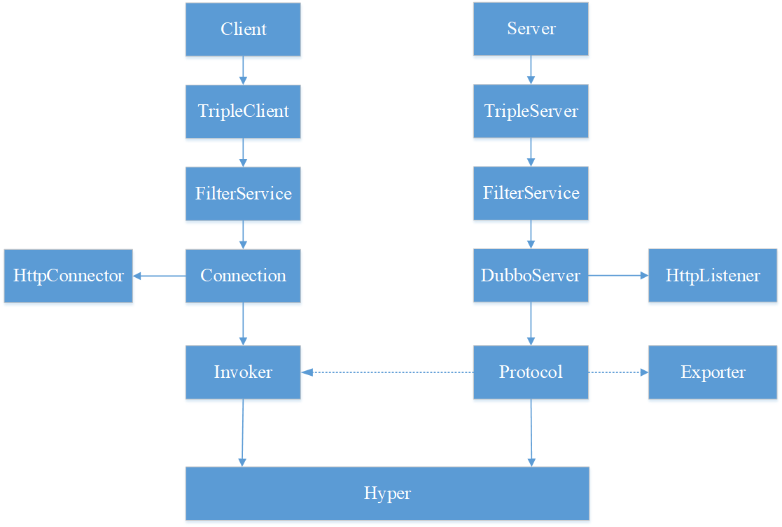 上图中都是 Dubbo Rust 核心设计的重要组件,保证 Dubbo Rust 具备微服务框架中完整的 RPC 通信能力以及服务治理能力。