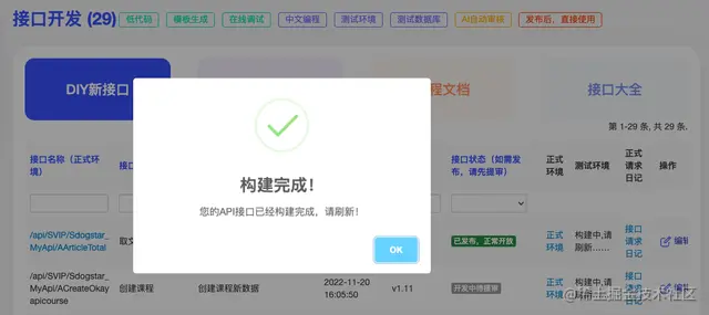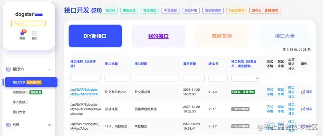 更完整的开发教程,可查看:接口DIY(API低代码开发)