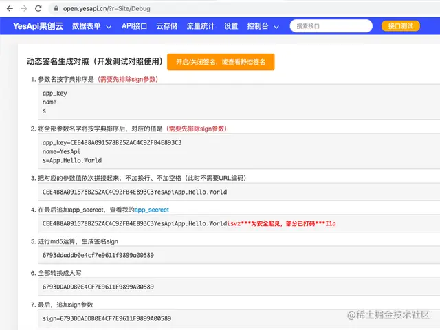 如果需要进行安全的签名校验,也可以参考动态签名的生成算法。