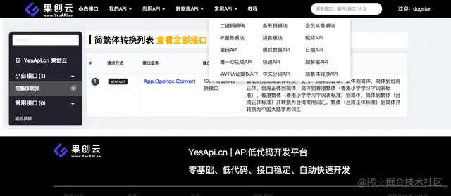 YesApi果创云,默认提供了500+款免费的API接口,可以直接调用和使用。