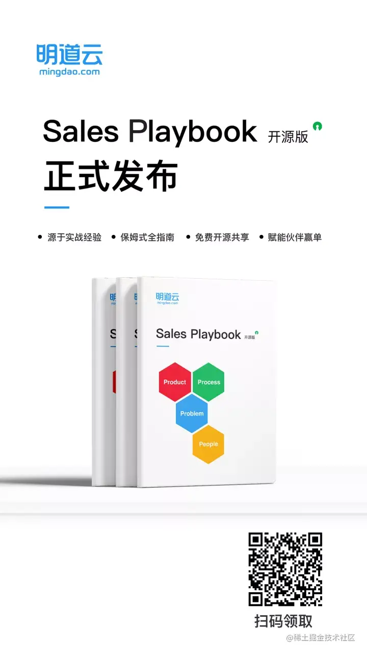 为了帮助伙伴提高销售能力,顺利展业,明道云将内部Sales Playbook的绝大部分内容脱敏并整理成文档,开源共享,让销售人员少走弯路,快速成长。
