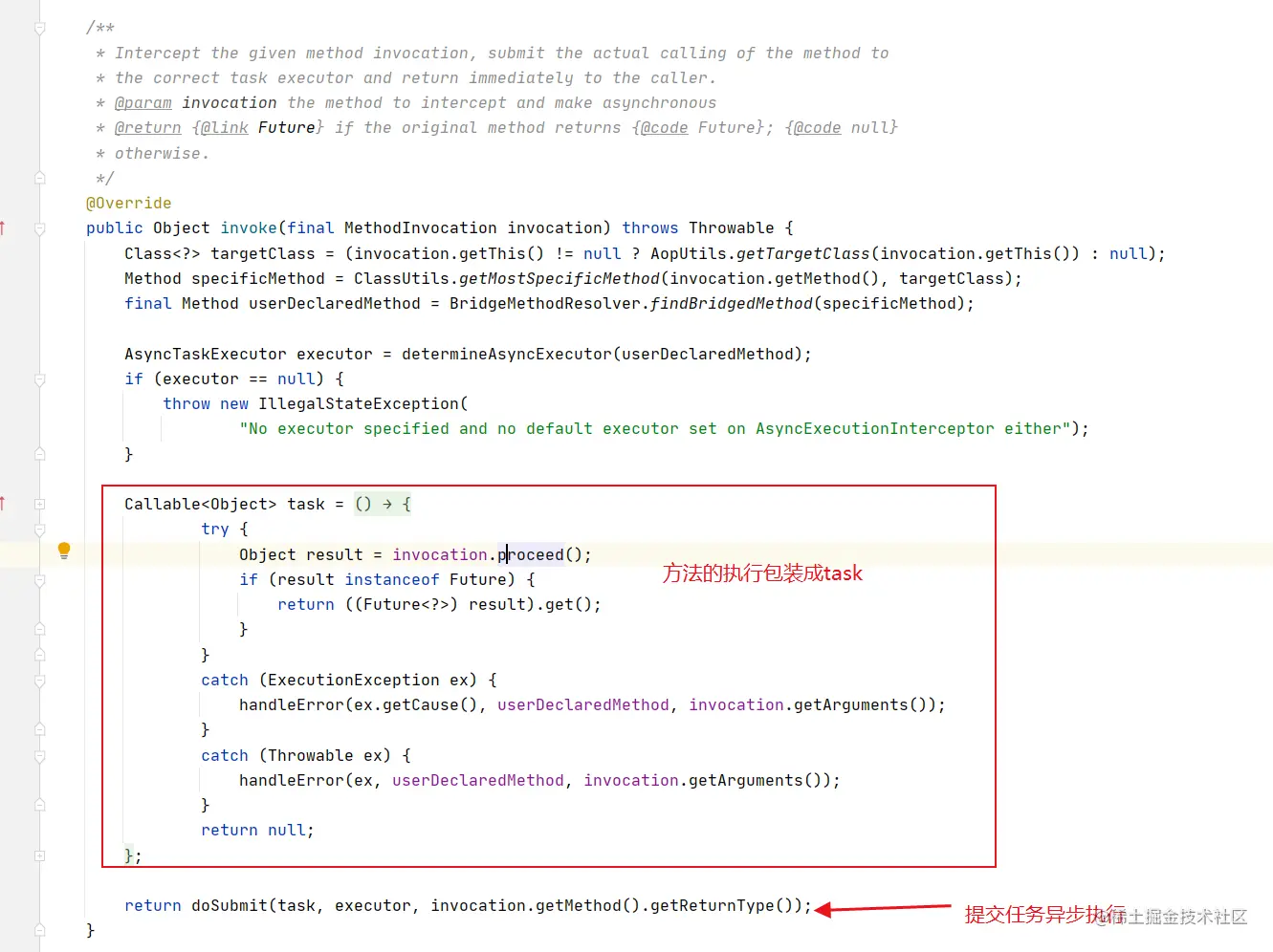 通知对应的是 AnnotationAsyncExecutionInterceptor,MethodInterceptor的实现,真正的执行逻辑