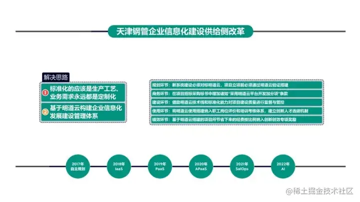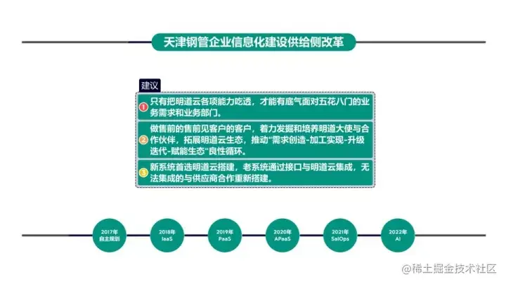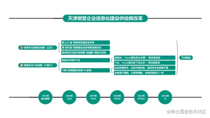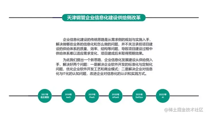 PPT底下是我们从2017年开始,自己根据实际情况、遇到的问题,然后规划出来的路线,一直到今天。看到这个之后,大家可能明白了,我们作为甲方,我们会遇到无数家咨询公司、软件开发公司,所有人的PPT都在搭房子。