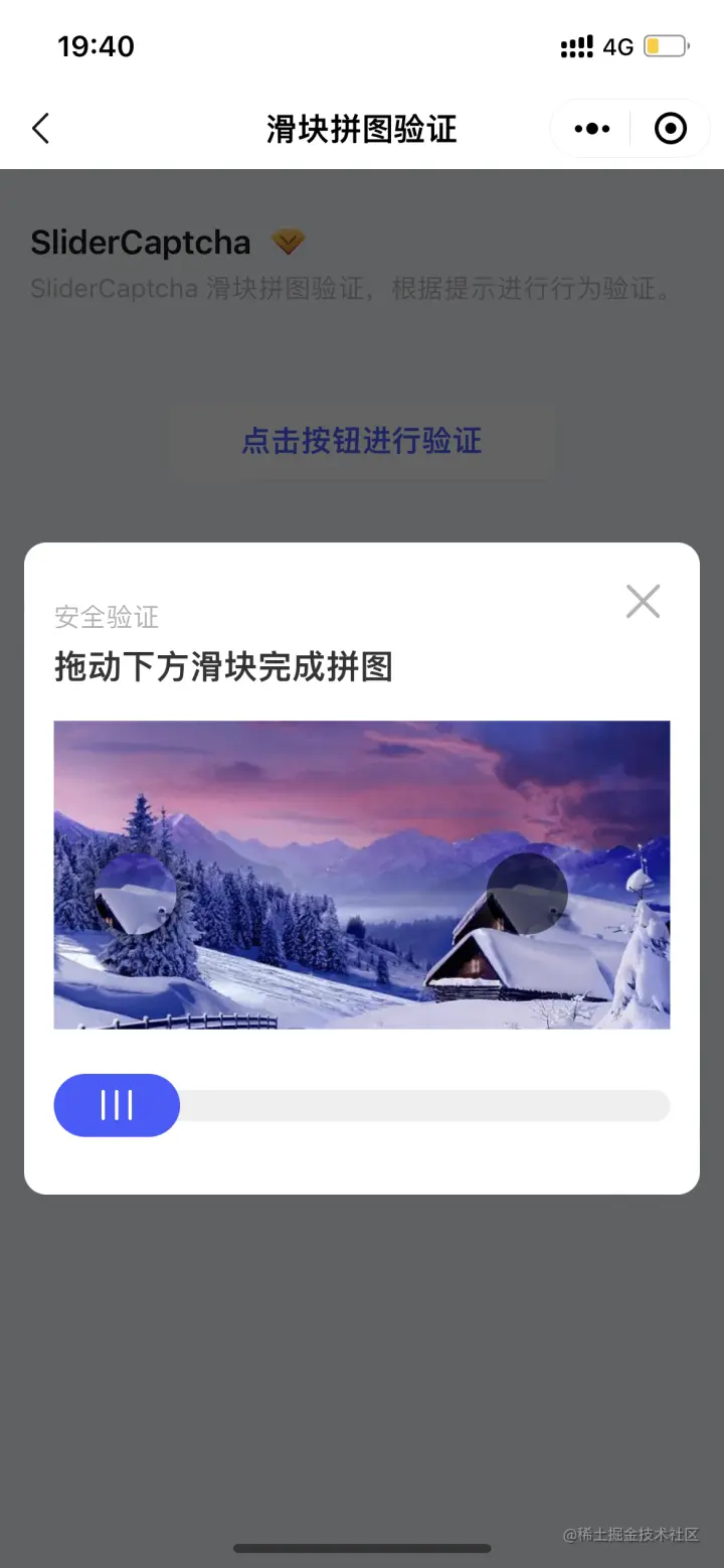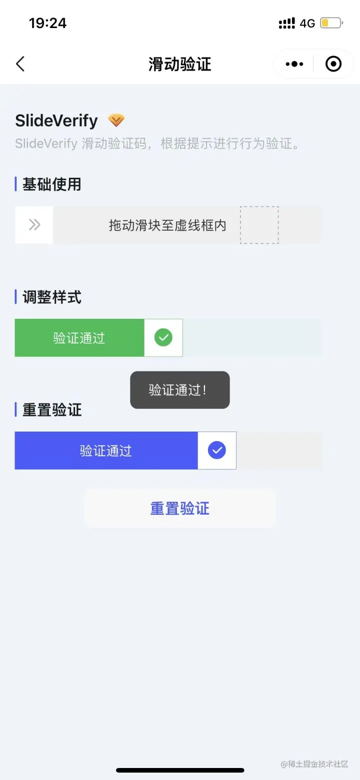 这是最典型的滑动验证码组件,支持自定义样式和重置验证