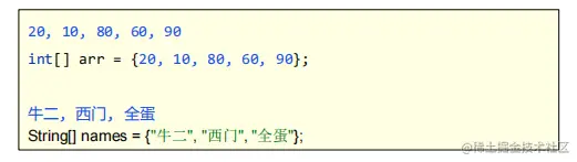 数据类型[] 数组名 = { 元素1,元素2 ,元素3,… };
