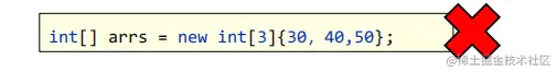 int[] arrs = new int[]{30, 40, "热爱编程的小白白"};
