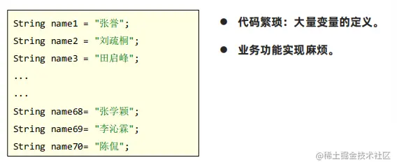 假如用变量存储这些名字,然后完成随机点名功能,怎么实现?存在有什么问题?